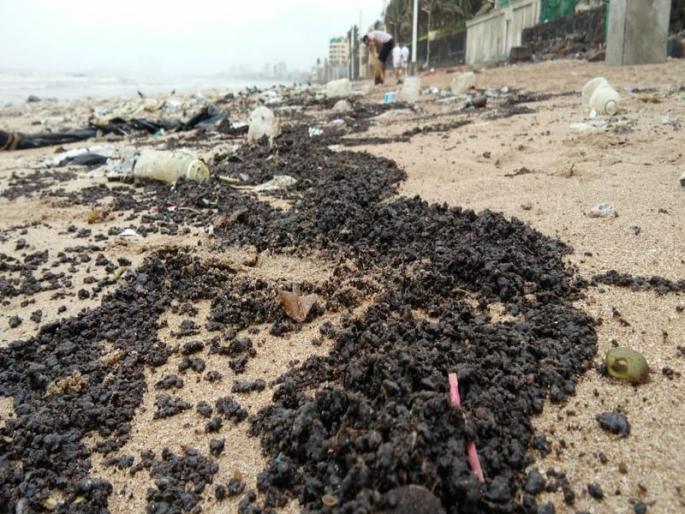 जुहू बीचवर मोठ्या प्रमाणात वाहून आले ऑइल टार बॉल