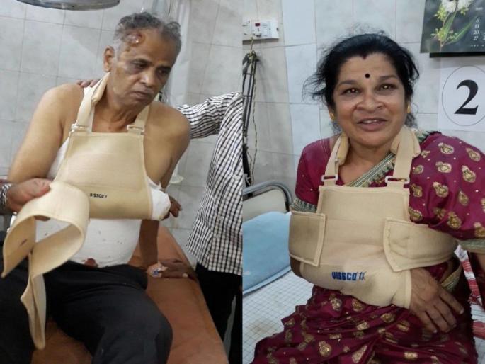 Hansa Thakur and Narendra Thakur, parents of cricketer Shardul Thakur, got injured after the motorcycle they were travelling on slipped, when they were returning from a wedding ceremony in #Palghar last night. Both admitted to hospital #Maharashtra