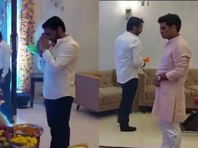 मुंबई - मुख्यमंत्री एकनाथ शिंदे यांनी गणेशोत्सव काळात घरोघरी भेटी देऊन अनेक कार्यकर्त्यांचे समाधान केले. तर, उद्योजक मुकेश अंबानी यांच्यापासून ते राज ठाकरेंपर्यंतच्या दिग्गजांच्याही घरी बाप्पांचे दर्शन घेतले. या गाठीभेटीवरुन विरोधी पक्षनेते अजित पवार यांनी मुख्यमंत्री एकनाथ शिंदेंवर टिका केली होती. त्या टिकेला मुख्यमंत्र्यांचे चिरंजीव खासदार श्रीकांत शिंदेंनी प्रत्युत्तर दिलं होतं. त्यामुळे, शिंदे विरुद्ध पवार असा सामना रंगला होता. मात्र, आता अजित पवारांचे चिरंजीव पार्थ पवार मुख्यमंत्र्यांच्या वर्षा या निवासस्थानी बाप्पांच्या दर्शनाला पोहोचले आहेत.