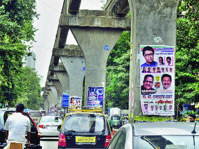 मोनोच्या खांबांवर राजकीय पोस्टरबाजी