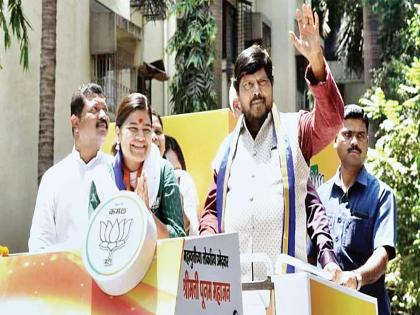 प्रचार फेरीत चेंबूर पेस्टम सागरमध्ये सहभागी होण्यासाठी केंद्रीय राज्यमंत्री रामदास आठवले, स्थानिक आमदार मंगेश कुडाळकर, अविनाश महातेकर, गौतम सोनावणे उपस्थित होते. किरण शेवाळे, श्रीकांत भिसे यांच्यासह भाजपच्या पदाधिकाऱ्यांंनी त्यांचे स्वागत केले. भगवे व निळे फेटे व गळ्यात भगवे, निळे उपरणे घालून, यावेळी महिला कार्यकर्त्या मोठ्या संख्येने हजर होत्या. महिला कार्यकर्त्यांसोबत असलेल्या लहानगीला कडेवर उचलताच अनेकांनी हे चित्र आपापल्या मोबाइलमध्ये साठवले. सजविलेल्या उघड्या जीपमधून सर्वांना महाजन व इतर नेत्यांनी अभिवादन केले.