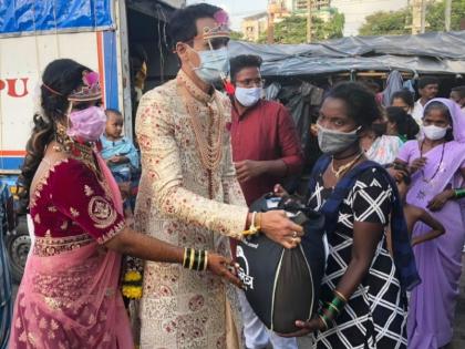 प्रभादेवीच्या नवविवाहित प्रफुल्ल गावडेने जपली सामाजिक बांधिलकी; आहेरच्या रकमेतून फुटपाथवरील गरीबांना धान्याचे दान