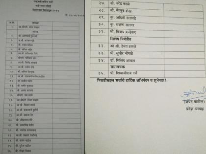 दरम्यान, याशिवाय विशेष निमंत्रित म्हणून पक्षाचे कोषाध्यक्ष आमदार हेमंत टकले, सुधीर भोंगळे, डॉ. मिलिंद आवाड, तर समन्वयक म्हणून प्रदेश सरचिटणीस शिवाजीराव गर्जे यांची नियुक्ती करण्यात आली आहे.