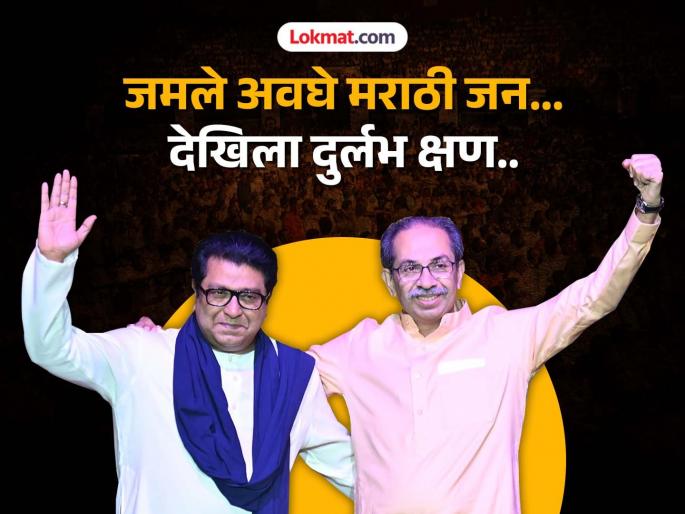 थेट अमेरिकेहून मुंबई गाठली...ठाकरे बंधू एकत्र येणार हे पाहण्यासाठी मुंबईसह महाराष्ट्रातून दोन्ही पक्षांचे कार्यकर्ते, नागरिक, कलाकार या सोहळ्याला उपस्थित होतेच. पण रवींद्र मराठे नावाचे गृहस्थ या क्षणाचे साक्षीदार होण्यासाठी थेट अमेरिकेहून मुंबईत आले होते. "अमेरिकेत आज राहणाऱ्या मराठी माणसांचं प्रतिनिधीत्व करण्यासाठी आज आपण इथं आलो आहे असं समजा. कारण आज अमेरिकेतील मराठी माणसाच्याही मनातील इच्छा पूर्ण झाली आहे", असं रवींद्र मराठे म्हणाले.