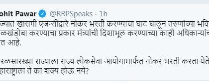 राज्य सरकारच्या या मेगभऱती प्रकियेला कर्जत-जामखेडचे आमदार रोहित पवार यांनी आक्षेप घेतला आहे