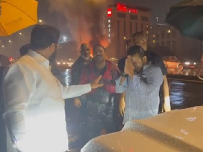 ही घटना घडली तेव्हा संबंधित भागात पाऊसही सुरू होता. मुख्यमंत्री शिंदे भरपावसात गाडीतून खाली उतरले. त्यांनी संबंधित तरुणाला त्याचे नाव विचारले. यानंतर त्या तरुणाला धीर देत, जीव वाचला हे महत्त्वाचे, गाडी आपण नवी घेऊ. काळजी करू नकोस, असे मुख्यमंत्री म्हणाले. एवढेच नाही, तर पुन्हा गाडीत बसताना, संबंधित तरुणाला जळत्या गाडीजवळ न जाण्याचा सल्लाही दिला.