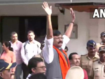 संजय राऊत यांनी आपल्या अनोख्या शैलीत निवासस्थानाबाहेर जमलेल्या शिवसैनिकांना अभिवादन केले. संजय राऊत यांना घरातून बाहेर पडल्यानंतर गळ्यातील भगवा गमछा काढून त्यांनी हवेत फिरवला आणि त्यांच्या समर्थकांना अभिवादन केले. तसेच दुसरीकडे खिडकीत भावुक झालेली आई आणि त्यांची पत्नी राऊत यांना ईडीचे अधिकारी घेऊन जाताना पाहताना दिसले. तसेच राऊत यांच्या घराबाहेरील रस्त्यावरून करणे ईडी कार्यालयात जाताना देखील संजय राऊत यांनी कारच्या सनरुफमधून बाहेर येऊन शिवसैनिक आणि समर्थकांना हात दाखवून आणि पुन्हा गळ्यातील भगवा गमछा फिरवून अभिवादन केले. दरम्यान आम्ही संजय राऊतांना घेऊन जाऊ देणार नाही, डोक्यावरून गाड्या गेल्या तरी चालेल असा आक्रमक पवित्रा जमलेल्या शिवसैनिकांनी घेतला होता. मात्र, पोलिसांनी कारवाईत अडथळा निर्माण करणाऱ्या शिवसैनिकांना ताब्यात घेतले आहे.