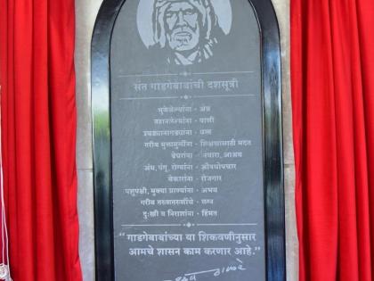 संत गाडगेबाबा यांच्या दशसूत्रीनुसार आपले सरकार काम करेल आणि या दशसूत्रीचा फलक मंत्रालयाच्या प्रवेशद्वाराजवळ लावण्यात येईल, अशी घोषणा मुख्यमंत्र्यांनी नागपूर येथील अधिवेशनात केली होती. त्यानुसार या मार्बल शिळेत कोरलेल्या फलकाचे अनावरण आज करण्यात आले.