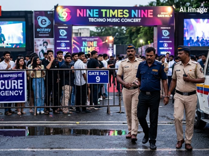 नेस्को आणि नागपूरच्या इन्स्पायरिंग टाय कंपनीने नाईन टाईम्स नाईन टेक्नो म्युझिक कॉन्सर्टचे आयोजन करत, सुरक्षेची जबाबदारी सेफक्युअर या सुरक्षा रक्षक पुरवणाऱ्या एजन्सीवर सोपवली. एजन्सीचा सुरक्षा रक्षक असलेल्या गुप्ताने विनीत गेरेवाल, आयुष साहित्य आणि त्यांच्या अन्य साथीदारांना प्रत्येकी हजार ते दोन हजार रुपये स्वीकारून विनातिकीट मुख्य प्रवेशद्वार टाळून प्रवेश नसलेल्या गेट क्रमांक नऊ येथून प्रवेश दिल्याचे तपासात उघड झाले आहे.
