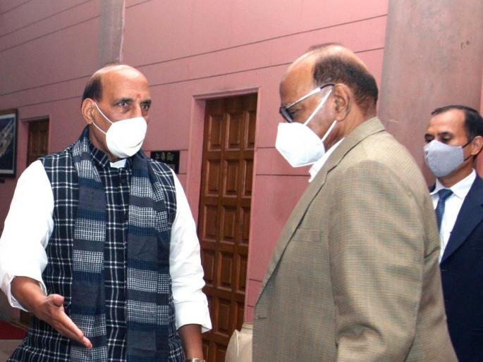 आज बुधवार सर्वपक्षीय नेत्यांसमवेत पवार राष्ट्रपती रामनाथ कोविंद यांना भेटणार आहेत. पुरंदर विमानतळाच्या जमीन अधिग्रहणासंदर्भात पवार यांनी संरक्षणमंत्री राजनाथसिंह यांची भेट घेतली, अर्धा तास बैठक चालली. ''पुणे शहराच्या आंतरराष्ट्रीय विमानतळावर हवाई वाहतुकीचा वाढता भार असल्याने पुरंदर इथे नवा विमानतळ स्थापन करण्याचा प्रस्ताव महाराष्ट्र सरकारने दिलाय. प्रस्तावित विमानतळाचे काम जलदगती व प्राधान्यक्रमाने सुरू व्हावे यासाठी केंद्रीय संरक्षण मंत्री राजनाथसिंह यांची भेट घेतल्याचे पवार यांनी आपल्या ट्विटर अकाऊंटवरुन सांगितले. त्यामुळे, पुरंदर येथील विमानतळासाठी जमिन अधिग्रहण कामाला लवकरच सुरुवात होईल, असे दिसून येत आहे. दरम्यान, या भेटीनंतर शरद पवारांनी पत्रकांरांच्या प्रश्नाला उत्तर देताना विरोधकांना टोला लगावला.