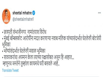 माजी मुख्यमंत्री उद्धव ठाकरे यांच्या टीकेवर शिंदे गटाच्या नेत्या शीतल म्हात्रे यांनी ट्विट उत्तर दिलं आहे.