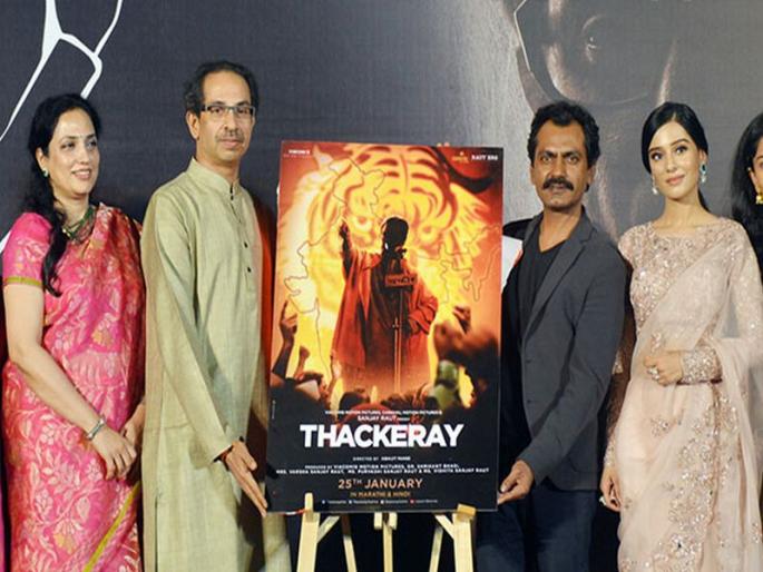 मुंबई: ठाकरे चित्रपटाचा म्युझिक लॉन्च सोहळा आज संपन्न झाला. या सोहळ्याला चित्रपटात शिवसेनाप्रमुख बाळासाहेब ठाकरे यांची भूमिका साकारणारे नवाजुद्दीन सिद्दीकी, अभिनेत्री अमृता राव यांच्यासह शिवसेना पक्षप्रमुख उद्धव ठाकरे उपस्थित होते. यावेळी उद्धव यांनी चित्रपटाच्या मेकिंगच्या काही आठवणी सांगितल्या.ठाकरे चित्रपटातील 'आया रे सबका बापरे, कहते है उसको ठाकरे...' हे हिंदी गाणं आजच्या दिमाखदार सोहळ्यात लॉन्च करण्यात आलं. या गाण्याला यूट्यूबवर लोकांची पसंती मिळताना दिसते आहे. अवघ्या 5 तासांमध्ये 85 हजार लोकांनी हे गाणं पाहिलं आहे. नकाश अजीननं हे गाणं गायलं आहे. 'ते गाणं ऐकताना मला थोडं भान ठेवावं लागलं. कारण त्यावेळी मला गाण्यावर ठेका धरावासा वाटला होता,' अशी गाण्याच्या मेकिंगची आठवण उद्धव यांनी लॉन्चवेळी सांगितली.