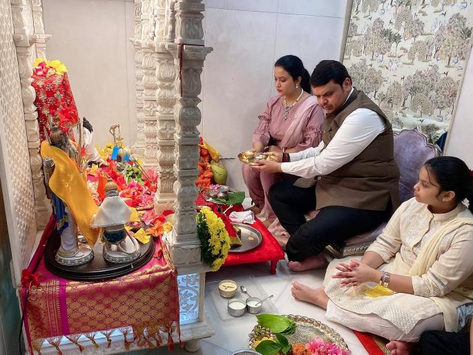 यंदाच्या वर्षातील पहिलाच सण उत्साहात साजरा होतोय तो म्हणजे दिवाळी. अनलॉक आणि मिशन बिगेन अगेननंतर दिवाळीच्या सणाने सर्वांनाच दिलासा दिला आहे. कोरोनाची भीती घालवून आशावादी प्रकाश घराघरात पडल्याचं दिसत आहे. देशभरात सायंकाळी सर्वत्र दिवाळीचे लक्ष्मीपूजन करण्यात आहे. राजकीय नेते, सेलिब्रिटींपांसून सर्वसामान्य नागरिकांच्या घरीही तेच आनंदाचे आणि उत्साहाचे वातावरण आहे. राज्याचे विरोधी पक्षनेते देवेंद्र फडणवीस यांनीही आपल्या घरी लक्ष्मीपूजन केले. अमृता फडणवीस यांनी या पूजचे फोटो सोशल मीडियावर शेअर केले आहेत.