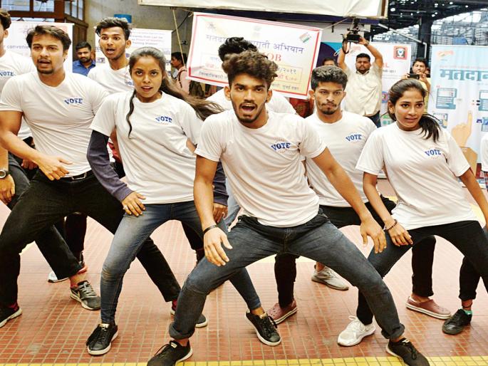 मुंबई : मतदानाचा टक्का वाढावा, नवमतदारांसह सर्व पात्र मतदारांनी आवर्जून मतदान करावे, यासाठी निवडणूक आयोगाने ‘फ्लॅश मॉब’च्या माध्यमातून जनजागृती मोहीम हाती घेतली आहे. दादर, परळ आणि नरिमन पॉइंट येथील फ्लॅश मॉबनंतर बुधवारी सीएसएमटी स्थानकावरील या ‘फ्लॅश मॉब’ला नागरिकांकडून उत्स्फूर्त प्रतिसाद मिळाला. मतदानाचा संदेश देणारे हे फ्लॅश मॉब सध्या कुतूहलाचे विषय ठरत आहेत.छत्रपती शिवाजी महाराज स्थानकात बुधवारी दुपारी प्रवाशांची लोकल पकडण्याची लगबग सुरू असतानाच, २० तरुण-तरुणींनी फ्लॅश मॉब सुरू केला. अचानक सुरू झालेल्या या सामूहिक नृत्याला अचंबित प्रवाशांनी आवर्जून दाद दिली. या फ्लॅश मॉबमधून ‘मतदान करा, आपले राष्ट्रीय कर्तव्य बजावा’ असे आवाहन मुंबईकरांना करण्यात आले.मुंबई शहर जिल्ह्यातील दक्षिण मध्य आणि दक्षिण या दोन मतदारसंघांत २४ लाख ५७ हजार २६ पात्र मतदार आहेत. मुंबईत चौथ्या टप्प्यात २९ एप्रिलला मतदान होणार आहे. मतदारांमध्ये मतदानाबाबत जनजागृती व्हावी, मतदानाचा टक्का वाढावा, यासाठी मुंबई शहरातील विविध सार्वजनिक ठिकाणी फ्लॅश मॉबचे आयोजन करण्यात येत असल्याचे, मुंबई शहर जिल्हाधिकारी तथा जिल्हा निवडणूक अधिकारी शिवाजी जोंधळे यांनी सांगितले.आणखी ‘फ्लॅश मॉब’ दिसणारआतापर्यंत दादर, परेल, नरिमन पॉइंट येथे फ्लॅश मॉब झाले आहेत. येत्या काळात चर्चगेट, मुंबई सेंट्रल, वरळी, गेट वे आॅफ इंडिया, सीआर-२ मॉल येथेही फ्लॅश मॉबचे आयोजन करण्यात येणार असल्याची माहिती उपजिल्हा निवडणूक अधिकारी फरोग मुकादम यांनी दिली.