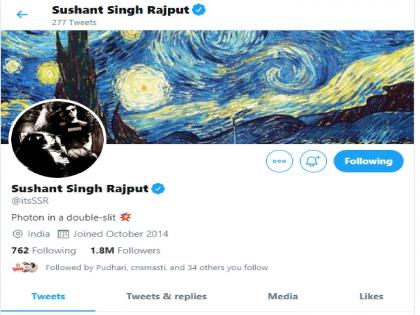 सुशांतच्या ट्विटर प्रोफाईलवरील कव्हर फोटोवर एक जगप्रसिद्ध पेंटिग आहे. ही पेंटिग व्हिन्सेंट व्हॅन गोघ यांनी काढली आहे