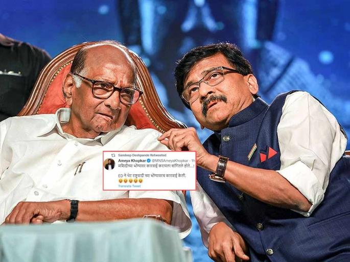 मनसेनंही राऊत यांच्या या कारवाईनंतर त्यांची खिल्ली उडवली आहे. मनचिसेनेचे प्रमुख अमेय खोपकर यांनी ट्विट करुन या कारवाईसंदर्भात मत व्यक्त केलं आहे. राज ठाकरेंनी गुढी पाडव्याला केलेल्या भाषणातील मुद्दा जोडत खोपकर यांनी राऊतांची खिल्ली उडवली. मशिदीच्या भोंग्यावर कारवाई करायला सांगितले होते. ED ने थेट राष्ट्रवादीच्या भोंग्यावरच कारवाई केली, अशी बोचरी टीका मनसेनं केली आहे. मनसेचे सरचिटणीस संदीप देशपांडे यांनीही हे ट्विट रिट्विट करत राऊतांची खिल्ली उडवली आहे.