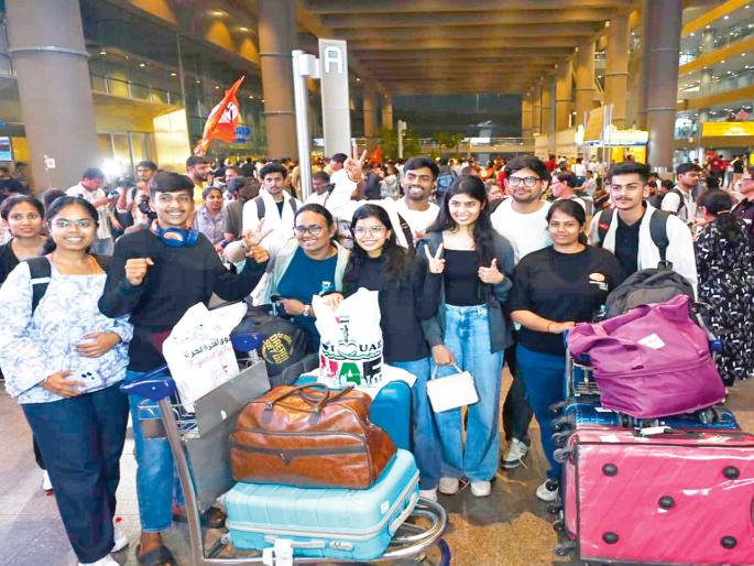मुंबई : फुजेरा आंतरराष्ट्रीय विमानतळावरून विमानाने मुंबईसाठी उड्डाण घेतले आणि सर्व प्रवाशांनी एकमुखाने गणपती बाप्पा मोरयाचा एकच गजर केला. आखाती देशांत पेटलेल्या युद्धामुळे दुबईत अडकलेल्या या प्रवाशांना महाराष्ट्रात कधी परतणार याची शाश्वती नव्हती. अशा परिस्थितीत दोन विशेष विमाने दाखल झाली व सर्वांचा अक्षरश: बांध फुटला.