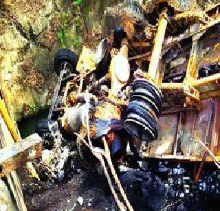 नागोठणे : भरधाव वेगात ट्रकने मोटारसायकलला धडक दिल्याने ट्रक पलटी झाला. आगीचा भडका उडून मोटारसायकलस्वार आगीत जळून खाक झाला. तर ट्रकचालक किरकोळ जखमी झाला. अपघातात दोन्ही वाहने जळाली असून सोमवारी रात्री साडेआठ ते नऊच्या दरम्यान मुंबई-गोवा महामार्गावर सुकेळी खिंडीनजीक ही दुर्घटना घडली. सोमवारी रात्री ट्रक धाटाव, रोहे येथून शुद्ध पाण्याच्या बाटल्या भरून औरंगाबादकडे जात होता. तर पल्सर मोटारसायकल ऐरोली, नवी मुंबईकडून चिपळूणकडे जात होती. दोन्ही वाहने सुकेळी खिंडीनजीक आल्यानंतर खिंडीतून वेगात खाली उतरणाऱ्या ट्रकचालकाचे नियंत्रण सुटले. त्याने समोरून येणाऱ्या मोटारसायकलला धडक दिली व ट्रक रस्त्याच्या खाली पलटी झाला. त्याच दरम्यान कोणत्यातरी एका वाहनाला आग लागून आगीने रौद्ररूप धारण केले व दोन्ही वाहने आगीने वेढली गेली. ट्रकचालक महमद अली अबू शेख (५०, रा. पैठण, औरंगाबाद) ताबडतोब आगीतून बाहेर आल्याने तो बचावला, तर सूरज मोरे (२८) आणि प्रशांत परीट (२७, दोन्ही ऐरोली, नवी मुंबई) हे दोघे मोटारसायकलस्वार आगीच्या भक्षकस्थानी पडून मृत्यू पावले. आगीनंतर नागोठणे पोलिसांनी तातडीने येथील रिलायन्स आणि सुप्रीम पेट्रोकेम या दोन कंपन्यांच्या अग्निशमन दलाला अपघातस्थळी पाचारण केले होते, मात्र तोपर्यंत दोन्ही वाहने जळून खाक झाली होती. अपघाताची नोंद नागोठणे पोलीस ठाण्यात करण्यात आली असून अधिक तपास करीत आहेत. (वार्ताहर)