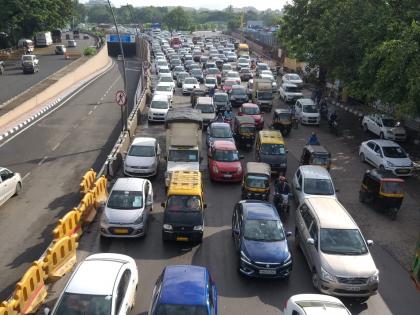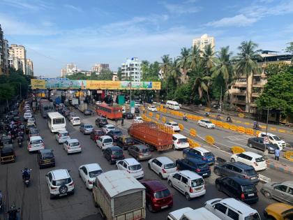ठाण्याहून मुंबईच्या दिशेने जाणाऱ्या वाहनांच्या रांगा