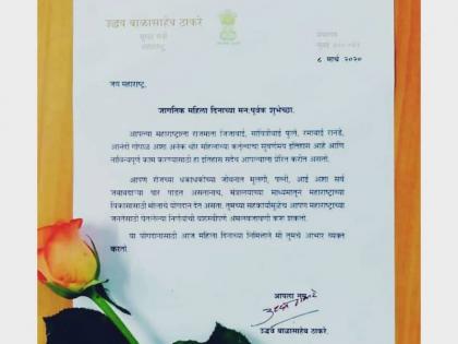 मुंबई - मंत्रालयात आज येणाऱ्या महिलांना जेव्हा अगत्यपूर्वक फुले आणि एक पत्र देऊन त्यांचे स्वागत करण्यात आले. मंत्रालायात अचानक झालेल्या या स्वागताचा सर्वच महिलांना सुखद धक्का होता. मुख्यमंत्री सचिवालयाचे कर्मचारी हसतमुखाने शुभेच्छा देऊन हे स्वागत करीत होते आणि महिलांच्या हाती एक पत्र देण्यात येत होते. हे पत्र चक्क मुख्यमंत्री उद्धव ठाकरेंचे होते. त्यामुळे पत्र घेणाऱ्या महिलांना अधिकच आनंद झाला. महिला दिनाच्या निमित्ताने मुख्यमंत्र्यांनी महिलांच्या सन्मानार्थ हा स्वागतसोहळा आयोजित केला होता.