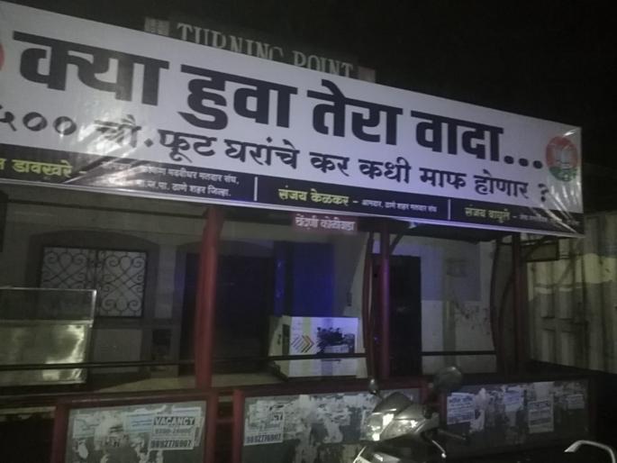 ठाणे : ठाणेकरांना ५०० चौरस फूटापर्यंत घराचा मालमत्ता कर माफ करण्यासंदर्भात शिवसेनेने महापालिका निवडणुकीच्या वेळी घोषणेची, भाजपने बॅनरच्या माध्यमातून शिवसेनेला आठवण करु न दिली आहे. शहरातील विविध भागात भाजपाने क्या हुआ तेरा वादा असा बॅनरद्वारे सवाल करीत मालमत्ता करमाफीवरून शिवसेनेने सुरू केलेल्या टाळाटाळीकडे ठाणेकरांचे लक्ष वेधले आहे. परंतु दुसरीकडे महापौर नरेश म्हस्के यांनी भाजपची ही केवळ एक स्टंट बाजी असल्याचा आरोप केला आहे. कोरोनाच्या आपत्तीत सापडलेल्या लाखो ठाणेकर कुटूंबांना मालमत्ता कर व पाणीपट्टीतून दिलासा देण्यास ठाणे महापालिकेतील सत्ताधारी शिवसेनेने नकार दिला आहे. महापालिकेचे उत्पन्न घटणार असल्याचे कारण दाखवून, शिवसेनेच्या नेत्यांकडून सातत्याने टाळाटाळ केली जात आहे. मात्र, २०१७ मध्ये झालेल्या महापालिकेच्या निवडणुकीत सत्ताधारी शिवसेनेने जाहीर केलेल्या वचननाम्यात ५०० चौरस फूटांपर्यंत घरांना मालमत्ता कर माफ करण्याचे आश्वासन दिले होते. परंतु, आता सत्ता मिळाल्यानंतर वचननाम्याचा सोयिस्कर विसर पडून मालमत्ता कर माफ करण्यासाठी टाळाटाळ केली जात आहे, याकडे भाजपचे आमदार व जिल्हाध्यक्ष निरंजन डावखरे, आमदार संजय केळकर, महापालिकेतील गटनेते संजय वाघुले यांनी लक्ष वेधले आहे. ठाणे शहरातील विविध भागात व बसथांब्यांच्या ठिकाणावर भाजपाने लावलेल्या क्या हुआ तेरा वादा बॅनरची गुरुवारी सकाळपासून नागरिकांमध्ये व सोशल मिडियात चर्चेचा विषय ठरली.