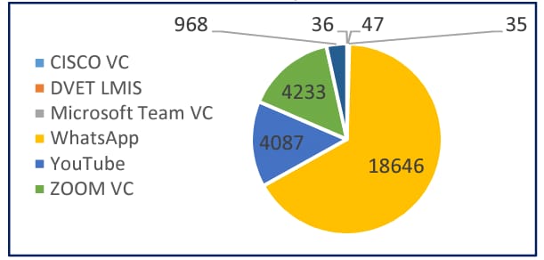 २३ मार्च ते २३ एप्रिल दरम्यान झालेल्या ऑनलाईन झालेल्या २८ हजार ऑनलाईन लेक्चर्सपैकी तब्बल ऑनलाईनचे, १८ हजार ६४६ लेक्चर्स पाहण्यासाठी ६६. ४७ % विद्यार्थ्यांनी व्हाटसअपचा वापर केला आहे. तर झूम एप्लिकेशनद्वारे १५. ९ % विद्यार्थ्यांनी ४२३३ लेक्चर्स अटेंड केले आहेत. १४. ५७ % विद्यार्थ्यांनी ४०८७ लेक्चर्स यु ट्यूबवर पहिले असल्याची माहिती संचालनालयाकडून देण्यात आली. सिस्को व्हिडीओ कॉन्फरन्समधून ०. १३ % विद्यार्थ्यांनी ३६ तर ४७ लेक्चर्स विद्यार्थ्यांनी संचालनालयाच्या ऑनलाईन मोड्यूलद्वारे शिकण्याचा प्रयत्न केला आहे. अशाप्रकारे राज्ययातील आयटीआयचे १०० टक्के विद्यार्थी व प्रशिक्षणार्थी विविध पर्यायाद्नवारे ऑनलाईन प्रशिक्षण घेत असल्याची माहिती संचालक दीपेंद्र सिंह कुशवाह यांनी दिली.