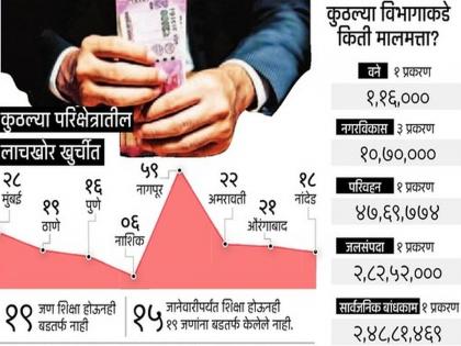 तर अन्य विभागांतील प्रत्येकी १ ते ४ जणांचा समावेश आहे. त्यामुळे यांच्यावर वेळीच कारवाई होणे गरजेचे आहे. कारवाई दाखविण्यासाठी काहींची बदली करण्यात आली आहे. दुसरीकडे, लाचखोरांवर कारवाई केल्यानंतर त्यांची १५ जानेवारीपर्यंत ५ कोटी ९० लाखांची मालमत्ता गोठ्विण्यास शासन मंजुरी मिळावी म्हणून प्रलंबित आहे. यामध्ये मुंबई २, पुणे २ सह अमरावती, औरंगाबाद आणि नाशिकमधील प्रत्येक एक प्रकरणाचा समावेश आहे.