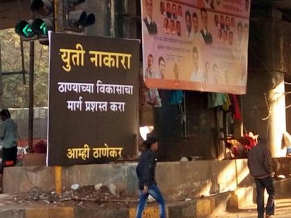 महापालिकात युती करण्यास काल सेना-भाजपामध्ये एकमत झाले असले तरी ठाणे येथिल भाजपाच्या कार्यकर्त्यांनी लगावल्या पोस्टरवरुन स्थानिक पातळीवर या युतीला स्पष्ट विरोध असल्याचं दिसून येतं आहे