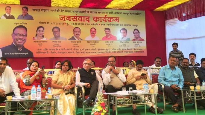 लोकमत न्यूज नेटवर्कनागपूर : सर्वांसाठी घरे योजनेत झुडुपी जंगलाच्या जागा सोडून शासकीय जागांवर अतिक्रमण करून घरे बांधलेल्या नागरिकांना १७ नोव्हेंबर २०१८ च्या परिपत्रकानुसार मालकी हक्काचे पट्टे देण्याचा निर्णय झाला आहे. नागपूर शहरात २०११ पूर्वी जे शासकीय जागेवर बसले आहेत, त्यांना हा लाभ मिळणार आहे. चार महिन्यात ९० टक्के लोकांना पट्टेवाटप क रण्यात येईल. सोबतच प्रधानमंत्री आवास योजनेच्या माध्यमातून घरे उपलब्ध केली जात आहेत. मात्र ज्यांना पट्टे वाटप करता येत नाही. अशा नदी व नाल्या काठावरील(कमांड एरिया) झोपडपट्टीधारकांसाठी शासन दिघोरी येथे ११ हजार घरे उभारणार असल्याची घोषणा पालकमंत्री चंद्रशेखर बावनकुळे यांनी सोमवारी महापालिकेच्या गांधीबाग झोन येथील जनसंवाद कार्यक्रमात केली.यावेळी महापौर नंदा जिचकार, आमदार कृष्णा खोपडे, गिरीश व्यास, उपमहापौर दीपराज पार्डीकर, स्थायी समिती अध्यक्ष वीरेंद्र कुकरेजा, माजी महापौर प्रवीण दटके, ज्येष्ठ नगरसेवक दयाशंकर तिवारी, झोन सभापती वंदना यंगटवार, आरोग्य सभापती मनोज चाफले, अप्पर आयुक्त रवींद्र ठाकरे यांच्यासह झोनमधील नगरसेवक व अधिकारी उपस्थित होते.केंद्र सरकरने सर्वसामान्यांना गंभीर आजारात उपचार मिळावे. यासाठी आयुष्यमान योजनेच्या माध्यमातून ५० कोटी लोकांचा आरोग्य विमा काढला आहे. मुख्यमंत्री देवेंद्र फडणवीस व केंद्रीय भूपृष्ठ वाहतूक मंत्री नितीन गडकरी यांच्या पुढाकाराने नागपूरसह राज्यातील लाखो लोकांना या योजनेचा लाभ मिळत असल्याचे पालकमंत्र्यांनी सांगितले.नागपूर शहरातील ५९ हजारापेक्षा कमी उत्पन्न असलेल्या २ लाख ६३ हजार केशरी कार्डधारकांना माफक दरात धान्य उपलब्ध क रण्याचा निर्णय शासनाने घेतला आहे. तसेच गॅस नसलेल्या कुटुंबांना उज्ज्वला गॅस योजनेच्या माध्यमातून गॅस सिलेंडर उपलब्ध केले जात आहे.मनपाला पुन्हा २३० कोटी मिळणारतत्कालीन मुख्यमंत्री विलासराव देशमुख यांच्या कार्यकाळात नागपूर महापालिकेला विकास कामासाठी दरवर्षी २५ कोटी देण्याचा निर्णय घेण्यात आला होता. मात्री मागील काही वर्षात ही रक्कम मिळाली नाही. ३८० कोटींची थकबाकी देण्याचा निर्णय राज्य सरकारने घेतला. यातील १५० कोटी देण्यात आले. लवकरच उर्वरित २३० कोटी महापालिकेला मिळणार असल्याची माहिती पालकमंत्र्यांनी यावेळी दिली. तसेच जीएसटी अनुदानात ४० कोटींनी वाढ करण्यात आल्याचे त्यांनी सांगितले.मिशन मोडवर विकास कामेनागपूर शहराचा चौफेर विकास व्हावा, यासाठी मुख्यमंत्री देवेंद्र फडणवीस, केंद्रीय मंत्री नितीन गडकरी व आम्ही काम करीत आहोत. महापालिकेची आर्थिक स्थिती विचारात शहरातील नागरिकांना उत्तम दर्जाच्या मूलभूत सुविधा उपलब्ध व्हाव