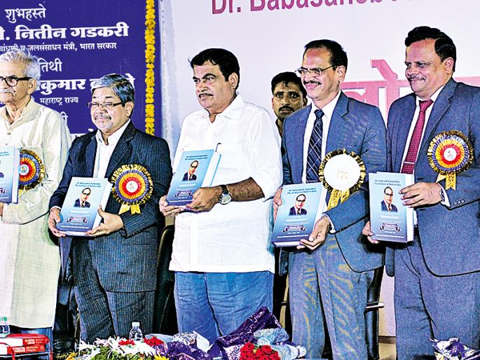 नितीन गडकरी म्हणाले, डॉ. बाबासाहेब आंबेडकर यांनी सिंचनापासून तर शेतीपर्यंत आणि उद्योगापासून तर नदीजोडणीपर्यंत अनेक विषयावर आपले विचार मांडले आहेत. त्यांच्या विचारांवर त्या काळात गांभीर्याने लक्ष दिले गेले असते तर आज देशाचे चित्र वेगळे असते. त्यांनी नदी वाहतुकीबाबतही सांगितले होते. त्यांच्या विचारानुसार चाललो असतो तर एकट्या नदी वाहतुकीद्वारेच देशाचा विकास दर साडेतीन टक्केपर्यंत वाढला असता. नदी जोड प्रकल्पाबाबतही त्यांनी सांगितले आहे. मी या दोन्ही खात्याचा मंत्री आहे. डॉ. बाबासाहेब आंबेडकरांनी सांगितलेल्या विचारानुसार आपले काम सुरू आहे. येत्या दोन वर्षात देशात जलवाहतूक मोठ्या प्रमााणावर सुरू झाल्याचे दिसून येईल, असा विश्वासही त्यांनी व्यक्त केला. यावेळी गौरवग्रंथाचे संपादक डॉ. मधुकर कासारे यांनी ग्रंथावर भाष्य केले. प्रास्ताविक कुलसचिव पूरणचंद्र मेश्राम यांनी केले. डॉ. कोमल ठाकरे यांनी संचालन केले.