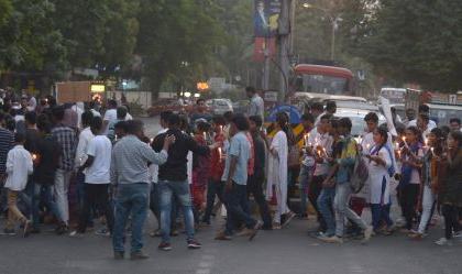 जीएस कॉलेजमध्ये बारावीत शिकणाऱ्या राहुल राधारमण तिवारी या विद्यार्थ्याचा किरकोळ वादातून मृत्यू झाला. राहुलच्या मृत्यूला जबाबदार असणाऱ्यांवर कठोर कारवाई करण्यासाठी शनिवारी सायंकाळी कॅण्डल मार्च काढण्यात आला.