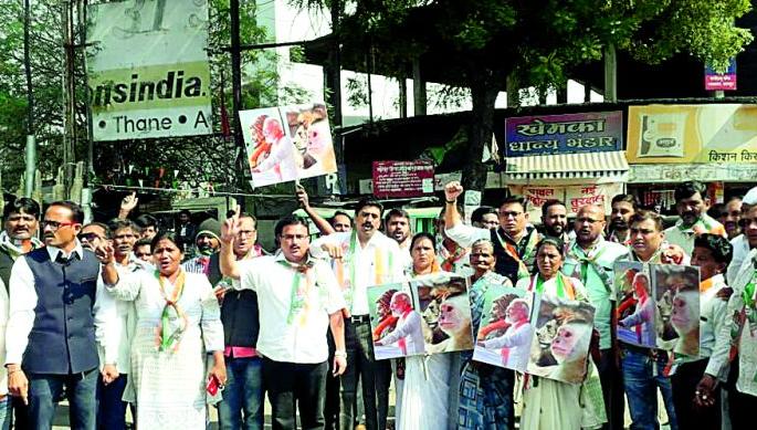 'आज के शिवाजी नरेंद्र मोंदी' या पुस्तकावर बंदी आणा : काँग्रेस उतरली रस्त्यावर शहरभर निदर्शने, धरणे