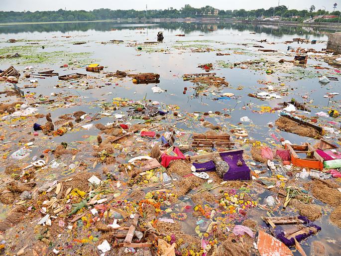 नागपूर : भाविकांनी वाजत-गाजत बाप्पांना घरी आणले...फुलांची आरास सजवून अतिशय स्वच्छतेत त्यांची मनोभावे पूजा केली...बुद्धीची देवता म्हणून रोज सकाळ-संध्याकाळ आरतीही गायली...परंतु बाप्पांना निरोप द्यायच्या वेळी मात्र हे भाविक नेमके निर्बुध्द झाले आणि १० दिवसांचे निर्माल्य, मूर्ती ठेवलेल्या लाकडाच्या पाट्या, नारळ, प्लास्टिकच्या पिशव्या, पाण्याच्या बाटल्या अशा जलप्रदूषणाला कारणीभूत ठरणाºया सर्व गोष्टी त्यांनी बाप्पांसह पाण्यात विसर्जित केल्या. परंतु पर्यावरणाचे नुकसान करतांना आपण अप्रत्यक्षपणे आपलेच जीवन संकटात टाकत आहोत, अशी सद्बुद्धी त्यांना एका क्षणालाही सुचली नाही. याचा अर्थ बुद्धीची देवता असलेल्या बाप्पांचा या भाविकांच्या घरातील मुक्कामही व्यर्थच ठरला. गणेश विसर्जनासाठी मंगळवारी भाविकांनी फुटाळा तलावावर एकच गर्दी केली. यात अनेकांनी सार्वजनिक गणेश मंडळातील मूर्ती, १० दिवसांत गोळा झालेले निर्माल्य तलावात टाकल्यामुळे तलावात सर्वत्र कचरा साचल्याचे दृश्य बुधवारी चौफेर दिसत होते. भाविकांनी निर्माल्य तलावात टाकू नये यासाठी महानगरपालिकेने फुटाळा तलावाच्या दोन्ही बाजूला मोठ्या कुंड्यांची व्यवस्था केली होती. परंतु तरीही अनेकांनी तलावातच निर्माल्य टाकले. नाईक तलावातही हीच स्थिती पाहावयास मिळाली. येथेही भाविकांनी गणेशमूर्तीसोबत निर्माल्य तलावात टाकल्यामुळे तलावात सर्वत्र नुसता कचरा दिसत होता.