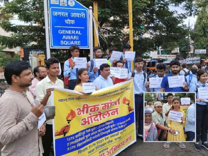 या माध्यमातून मिळालेली भीक शासनाच्या वित्त विभाग व इतर मागास बहुजन कल्याण विभागास मनी ऑर्डर द्वारे पाठविण्यात आल्याचेही त्यांनी सांगितले. आंदोलनात पियुष आकरे, कृतल आकरे, रमेश पिसे, मिरा मदनकर मुकुंद अडेवार, आकाश वैद्य, अनुप खड्डकर, रजत लांजेवार, देवेंद्र समर्थ,धीरज भिसिकर पंकज सावरबांधे, निकेश पिने, नयन कालबांडे, मनीष गिरडकर, सोनू फतींग हे उपस्थित होते.