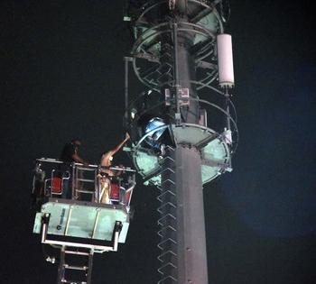 पथकाने त्याला समजावून खाली उतरविण्याचा बराच प्रयत्न केला, मात्र त्याला पकडण्याचा प्रयत्न केल्यास गळफास घेण्याची धमकी देत असल्याने पोलिसांनी सतर्कता बाळगली होती. जवळपास चार तास हे नाट्य सुरू होते. त्यामुळे पोलीस यंत्रणेची चांगलीच दमछाक झाली. रात्री जवळपास १०.३० च्या सुमारास बरेच प्रयत्न करून मनोजला पकडण्यात आणि खाली उतरविण्यात पोलीस व अग्निशमन दलाच्या जवानांना यश आले. नंतर त्याला रुग्णवाहिकेतून उपचारासाठी नेण्यात आले.