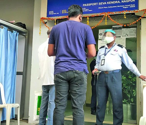 पारपत्रासाठी कागदपत्रांच्या पडताळणीचे आणि माहितीचे काम टाटा कंसल्टीज या कंपनीला सोपविण्यात आले आहे. मानकापूरच्या पुरातन शिवमंदिर भागात या विभागाचे कार्यालय आहे. या ठिकाणी परदेशी प्रवासाच्या परवानगीसाठी दररोज शंभरावर नागरिकांची ये-जा चाललेली असते. गेटवर गार्डद्वारे त्यांचे तापमान मोजण्याची व्यवस्थाही केली आहे. मात्र सॅनिटायझरसाठी त्यांना वेळेवर धावपळ करावी लागते. याबाबत काही नागरिकांकडून आलेल्या तक्रारीनंतर लोकमतने शहानिशा केली. गेटवर तैनात असलेले गार्ड भेटीबाबत सूचना असल्याचे तपासतात आणि सॅनिटायझर असण्याची चौकशी करतात. काही लोकांकडे ते असते पण काहींकडे ते नसते किंवा त्यांच्या वाहनात ठेवलेले असते. ज्यांच्याकडे नाही त्यांना वेळेवर दुकानातून घेण्यास सांगितले जाते. कार्यालय परिसरात व बाहेर दुकानात सॅनिटायझर ठेवलेले आहे. तेथून ५० रुपयाची बॉटल खरेदी करून तो हातावर चोळल्यानंतरच नागरिकांना प्रवेश दिला जातो. आवश्यक असलेल्या सॅनिटायझरबाबत असा बेजबाबदारपणा का, असा सवाल नागरिकांकडून उपस्थित केला जात आहे.