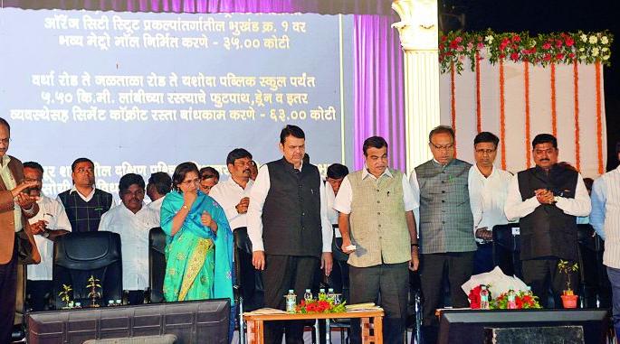 लोकमत न्यूज नेटवर्कनागपूर : ऑरेंज सिटी मेट्रो मॉल हा नागपूरच्या विकासासाठी महत्त्वाचा प्रकल्प ठरणार आहे. यासोबतच दक्षिण-पश्चिम भागाच्या सर्वांगीण विकासासह अत्याधुनिक पायाभूत सुविधांच्या निर्मितीमुळे सर्वसामान्य जनतेला जागतिक दर्जाच्या सर्व सुविधा उपलब्ध होतील व त्यांच्या जीवनात आमूलाग्र परिवर्तन घडेल, असा विश्वास मुख्यमंत्री देवेंद्र फडणवीस यांनी येथे व्यक्त केला.नागपूर मेट्रो व महानगरपालिकेच्या ऑरेंज सिटी मेट्रो मॉल तसेच दक्षिण-पश्चिम विधानसभा मतदार संघातील रस्ते, वीज, पाणी आदी सर्व आधुनिक सुविधांच्या विकास कामांचा शुभारंभ शनिवारी जयताळा येथे झाला. या विकास कामांवर ३७८.२५ कोटी रुपये खर्च होणार आहेत. मिहानच्या टॅक्सीवेसोबत आंतरराष्ट्रीय दर्जाच्या विमानतळाच्या बांधकामांची सुरुवात लवकरच होत असल्याची घोषणा मुख्यमंत्री देवेंद्र फडणवीस यांनी यावेळी केली.जयताळा येथील बाजार चौक येथे विविध विकास कामांचे भूमिपूजन व लोकार्पण सोहळ्याचे आयोजन करण्यात आले होते. यावेळी केंद्रीय भूपृष्ठ वाहतूक व जहाजबांधणी मंत्री नितीन गडकरी, पालकमंत्री चंद्रशेखर बावनकुळे, महापौर नंदा जिचकार, आ. सुधाकर कोहळे, आ. अनिल सोले, महाराष्ट्र राज्य लघु उद्योग विकास महामंडळाचे अध्यक्ष संदीप जोशी, महाराष्ट्र राज्य इमारत व इतर बांधकाम कामगार महामंडळाचे अध्यक्ष मुन्ना यादव, स्थायी समितीचे अध्यक्ष विक्की कुकरेजा, महामेट्रोचे प्रबंध संचालक ब्रिजेश दीक्षित, जिल्हाधिकारी अश्विन मुदगल, मनपा आयुक्त अभिजित बांगर, वास्तुविशारद हाफीज कॉन्ट्रॅक्टर आदी उपस्थित होते.मुख्यमंत्री फडणवीस म्हणाले,‘मिहान प्रकल्पाच्या’आरक्षणातून हा भाग आता मुक्त होणार असून, येथील ७० घरांचे पुनर्वसन याच भागात करण्यात येणार आहे. टाकळीसीम येथील झोपडपट्ट्यांमधील घरे वाचविण्यासाठी येथील रस्ता ४० फुटांचा करण्यात येणार आहे. एकात्मतानगर येथील झुडपी जंगलांच्या जमिनीवरील घरांनाही सर्वोच्च न्यायालयाच्या निर्णयानंतर मालकी हक्क पट्टेवाटप करण्याची प्रक्रिया करता येऊ शकणार आहे. मिहान प्रकल्पामध्ये आगामी काळात ३० हजार रोजगारनिर्मिती उपलब्ध होऊ शकणार आहे. सोनेगाव तलावाचा परिसर सुशोभित व विकसित करण्यासाठी १८ कोटींचा निधी उपलब्ध करून देण्यात आला असून, लवकरच अधिकचे १८ कोटी रुपयेही देण्यात येणार असल्याचेही मुख्यमंत्री फडणवीस यांनी सांगितले.केंद्रीय मंत्री नितीन गडकरी म्हणाले, ऑरेंज स्ट्रीट प्रकल्पाद्वारे महापालिकेला ५०० कोटीचा महसूल उपलब्ध होणार आहे. मेट्रो मॉलसारख्या प्रकल्पांमुळे जवळपास ५ हजार तरुणांना रोजगार उपलब्ध होऊ शकणार आहे. ब्रॉडगेज रेल्वेच्या ट्रॅकवरच आता ब्रॉडगेज मेट्रोही