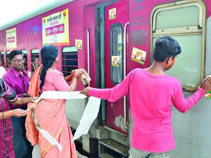 स्वच्छ भारत मोहिम देशभरात राबविण्यात येत असून नागपुरातदेखील भाजपच्या कार्यकर्त्यांनी त्यात पुढाकार घेतला होता. मात्र त्यांच्याकडून अजनी रेल्वेस्थानकावर प्रत्यक्षात कृती मात्र दिसून आली नाही. जागोजागी पिण्याच्या पाण्याचे पाऊच, चिप्स-बिस्किटांची रिकामी पाकिटे पडली होती. विशेष रेल्वेगाडीवर पक्षाचे स्टीकर्स व बॅनर्स लावण्यात आले होते. त्याचा कचरादेखील प्लॅटफॉमवरच फेकण्यात आला होता.