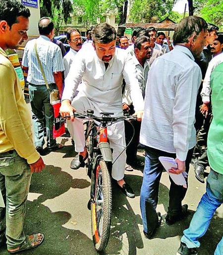 भाजपाचे काटोलचे आमदार आशिष देशमुख रविवारी जिल्हाधिकारी कार्यालय परिसरात आयोजित खरीप आढावा बैठकीत ते सायकलने आले आणि पेट्रोल-डिझेल दरवाढीचा निषेध करीत सरकारला घरचा अहेर दिला.