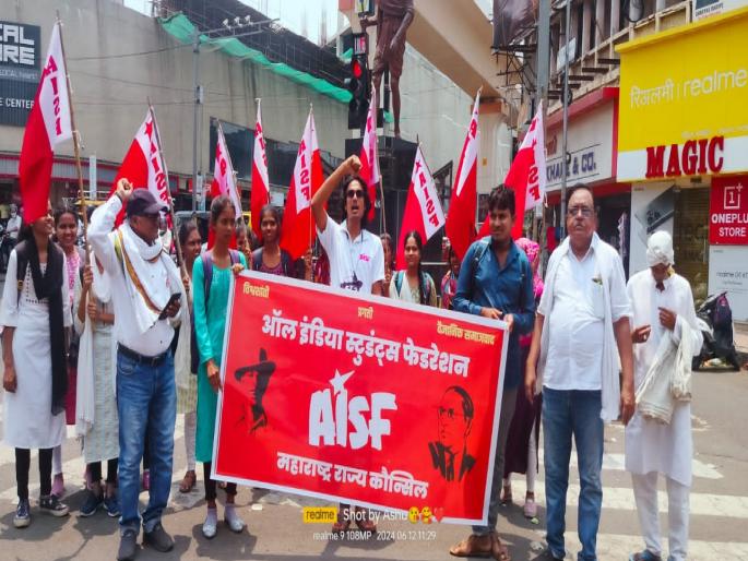 फेडरेशनच्या वतीने शहरातील व्हेरायटी चौकात नीट निकालाविराेधात आंदोलन करण्यात आले. एआयएसएफचे राज्यसचिव कॉ. वैभव चोपकर यांच्या नेतृत्वात हे आंदाेलन झाले. नीटच्या परीक्षेत एकाच केंद्रातील विद्यार्थ्यांनी सर्वाधिक गुण मिळवले, पैकीच्या पैकी गुण मिळविणाऱ्या एकूण विद्यार्थ्यांपैकी सहा जणांचे आसन क्रमांक एकाच क्रमाने आहेत. निकालामधील मिळालेल्या गुणांसह इतरही अनेक गाेष्टी आक्षेपार्ह आहेत. त्यामुळे यात माेठा भ्रष्टाचार झाल्याचा संशय येताे. त्यामुळे नीट परीक्षा रद्द करून गैरप्रकाराची न्यायालयीन चाैकशी करावी, अशी मागणी चाेपकर यांनी केली. नीट परीक्षेचे सध्याचे मॉडेल वैद्यकीय शाखेत जाण्यास इच्छुक असणाऱ्या विद्यार्थ्यांवर प्रचंड मानसिक दडपण आणते, परिणामी वेदनादायक घटना होतात. परीक्षेच्या तयारीच्या वाढत्या खर्चामुळे पालकांवर पडत असलेला आर्थिक दबाव देखील गंभीर चिंतेची बाब असल्याचे ते म्हणाले.