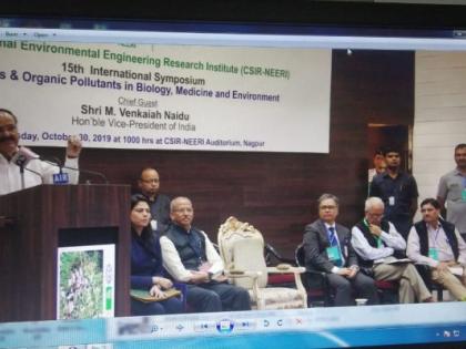 राष्ट्रीय पर्यावरण अभियांत्रिकी अनुसंधान संस्थान (नीरी) येथे १५ व्या आंतरराष्ट्रीय चर्चासत्राचे आयोजन करण्यात आले आहे. ‘जीवविज्ञान, चिकित्सा आणि पर्यावरणात धातू आयन आणि कार्बनिक प्रदूषक’ या विषयावर आयोजित या दोन दिवसीय आंतरराष्ट्रीय चर्चासत्राचे उद्घाटन उपराष्ट्रपती व्यंकय्या नायडू यांच्या हस्ते बुधवारी सकाळी करण्यात आले. त्यामुळे संशोधक व शास्त्रज्ञांना मार्गदर्शन करतांना ते बोलत होते. या आंतरराष्ट्रीय चर्चासत्राच्या अध्यक्षस्थानी नायर हॉस्पिटल मुंबईच्या असोसिएट प्रोफेसर डॉ. सुनाली खन्ना होत्या. तर महापौर नंदा जिचकार, खा. डॉ. विकास महात्मे, नीरीचे निदेशक डॉ. राकेश कुमार, प्रो. डॉ. पॉल टेक्नवोव (युएसए), आरोग्य मंत्रालय नवी दिल्लीचे डॉ. टी.के. जोशी आणि डॉ. हेमंत पुरोहित प्रामुख्याने उपस्थित होते.