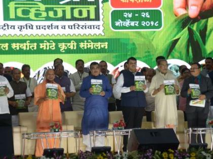 यावेळी मंचावर मुख्यमंत्री देवेंद्र फडणवीस, केंद्रीय भूपृष्ठ वाहतूक, जहाजबांधणी व जलसंपदामंत्री नितीन गडकरी, केंद्रीय कृषिमंत्री राधामोहन सिंह, केंद्रीय गृहराज्यमंत्री हंसराज अहिर, राज्याचे वित्तमंत्री सुधीर मुनगंटीवार, कृषिमंत्री चंद्रकांत पाटील, ऊर्जामंत्री चंद्रशेखर बावनकुळे, बिहारचे कृषिमंत्री प्रेमकुमार, पर्यावरण राज्यमंत्री प्रवीण पोटे पाटील, खा.कृपाल तुमाने, खा.विकास महात्मे, खा.रामदास तडस, माजी खासदार दत्ता मेघे, महापौर नंदा जिचकार, जिल्हा परिषदेच्या अध्यक्ष निशा सावरकर, ‘अॅग्रोव्हिजन’च्या सल्लागार समितीचे प्रमुख डॉ.सी.डी.मायी, आयोजन समितीचे संयोजक गिरीश गांधी, सचिव रवी बोरटकर, रमेश मानकर प्रामुख्याने उपस्थित होते. चार वर्षांअगोदर शेतकरी आत्महत्या हा मोठा चिंतेचा मुद्दा होता. मात्र मागील चार वर्षांत महाराष्ट्र व विदर्भातील शेतकरी आत्महत्यांमध्ये घट झाली आहे. मुख्यमंत्री फडणवीस व केंद्रीय मंत्री नितीन गडकरी यांच्या प्रयत्नांमुळेच येथील शेतकऱ्यांची स्थिती सुधारत आहे, असे योगी आदित्यनाथ म्हणाले. रवी बोरटकर यांनी प्रास्ताविक केले. रेणुका देशकर यांनी संचालन केले तर रमेश मानकर यांनी आभार मानले.