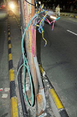 रहाटे कॉलनी चौक ते दीक्षाभूमी चौक : रस्त्यावर लोंबकळत आहेत विद्युत तारानागपूर : रहाटे कॉलनी चौक ते दीक्षाभूमी चौकाकडे जाणाऱ्या दक्षिण अंबाझरी मार्गावरील पथदिव्यांच्या तारा लोंबकळत असल्याने कधीही मोठा धोका होण्याची शक्यता आहे. विशेष म्हणजे गेल्या काही दिवसांपासून दुभाजक खोदून नवीन तारा टाकण्याचे काम सुरू आहे. परंतु संथगतीच्या कामामुळे तसेच अनेक जिवंत तारा उघड्यावर आल्याने रात्रीच्या वेळी या मार्गावरून वाहन चालविणे किंवा दुभाजक ओलांडणे धोकादायक ठरू शकते.या दक्षिण अंबाझरी मार्गावर आयटीआय, बी.आर.ए. मुंडले हायस्कूल, सार्वजनिक आरोग्य विभागाच्या उपसंचालकाचे कार्यालय, अंध विद्यालय व इतरही महत्त्वाच्या संस्था आहेत. यामुळे पहाटेपासून ते रात्री उशिरापर्यंत या मार्गावर वर्दळ असते. पहाटे व सायंकाळी या मार्गावर ‘मॉर्निंग वॉक’ करणाऱ्यांची संख्याही मोठी आहे. असे असताना मनपाच्या धंतोली झोनचे या मार्गाकडे विशेष लक्ष नसल्याचे दिसून येते. रस्त्याचे डांबरीकरण जागोजागी उखडलेले आहे. रस्त्याच्या दुभाजकाचे खोदकाम करून पथदिव्यांसाठी नवीन विद्युत लाईन टाकण्याचे काम अनेक दिवसांपासून सुरू आहे. परंतु संथगतीच्या कामामुळे रस्त्यावर हिरव्या रंगाच्या तारा पडून असतात. ज्या पथदिव्याची जोडणी केली जात आहे त्याच्या तर जिवंत तारा बाहेर आल्या आहेत. यामुळे रस्त्यावरून धावणाऱ्या वाहनांचा कधीही याला स्पर्श होऊन धोका होऊ शकतो. परिसरातील नागरिकांच्या मते, या तारांमधून अनेक वेळा ठिणग्या निघतात. अशा वेळी रस्त्यावरून चालणेही धोकादायक होऊ शकते. मनपाच्या धंतोली झोनच्या विद्युत विभागाने यावर तत्काळ उपाययोजना करावी, अशी नागरिकांची मागणी आहे. तत्काळ उपाययोजना केली जाईलदक्षिण अंबाझरी मार्गाच्या दुभाजकावरील पथदिव्यांसाठी नवी विद्युत लाईन टाकण्याचे काम एका खासगी कंपनीला देण्यात आले आहे. आणखी १५ दिवसांचे काम शिल्लक आहे. परंतु विद्युत तारा बाहेर आल्या असतील तर त्यावर तत्काळ उपाययोजना केली जाईल. लोकांच्या सुरक्षेच्या दृष्टीने मंगळवारीच ते काम हाती घेतले जाईल.-विजय मरसकोल्हेकनिष्ठ अभियंता, विद्युत विभाग धंतोली झोन