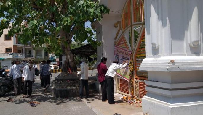 ‘सोशल डिस्टन्सिंग’ पाळत हनुमान मंदिरात बाहेरूनच घेतले दर्शन