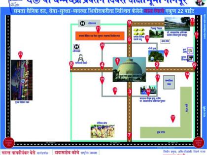 दीक्षाभूमीकडे येणाऱ्या मार्गावर वाहतुकीची कोंडी होऊन नागरिकांची गैरसोय होऊ नये म्हणून वाहतूक शाखेच्या पोलिसांनी यावर्षी बंदोबस्ताचे वेगळे नियोजन केले आहे. दीक्षाभूमीला जोडणाऱ्या