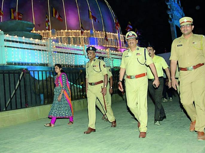 धम्मचक्र प्रवर्तन दिनाच्या पार्श्वभूमीवर दीक्षाभूमी परिसरात पोलिसांचा तगडा बंदोबस्त ठेवण्यात आला आहे. पोलीस आयुक्त डॉ. भूषणकुमार उपाध्याय यांनी बुधवारी रात्री दीक्षाभूमीला भेट देऊन सुरक्षा व्यवस्थेचा आढावा घेत आवश्यक निर्देश दिले.