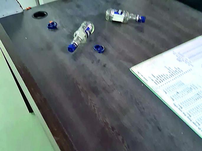 दुय्यम निबंधक कार्यालयात सकाळपासूनच विविध मालमत्तेच्या खरेदी-विक्रीच्या व्यवहारासंदर्भात सामान्य नागरिकांची रेलचेल होती. सायंकाळी ५.३० वाजताच्या सुमारास ओल्या पार्टीला सुरुवात झाली. ताशपत्ते, विदेशी दारूच्या बॉटल आणि सोबतीला चिवडा असा कार्यक्रम सुरू झाला. हे सर्व लाइव्ह व्हिडीओवजा चित्र लोकमतने आपल्या कॅमेऱ्यात कैद केले.