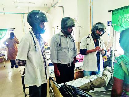 शासकीय रुग्णालयांमधील वाढत्या हल्ल्यांमुळे डॉक्टर सुरक्षित नाही, याकडे लक्ष वेधण्यासाठी सोमवारी इंदिरा गांधी शासकीय वैद्यकीय महाविद्यालय व रुग्णालयातील (मेयो) काही निवासी डॉक्टरांनी चक्क हेल्मेट घालून रुग्णांवर उपचार केले. डॉक्टरांच्या या ‘हेल्मेट’ आंदोलनाची रुग्णासोबतच शहरातही दिवसभर चर्चा होती.