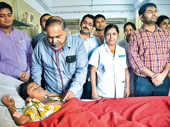 लोकमत न्यूज नेटवर्कनागपूर : खेळता खेळता सात वर्षीय मुलाने खिळा गिळला. शौचावाटे तो बाहेर येईल या समजुतीतून ग्रामस्थांनी त्याला अज्ञानातून केळ खाऊ घातले. मात्र, खिळा बाहेर येण्याऐवजी मोठ्या आतड्यांमध्ये जाऊन फसला. अशीच वेळ तीन वर्षांच्या चिमुकलीवर ओढवली. घरात पडलेला संगणकाचा सेल तिने गिळला. तोही अन्ननलिकेजवळ फसल्याने ती चिमुकलीही अत्यवस्थ झाली. या दोन्ही घटनेत सुपर स्पेशालिटी हॉस्पिटलचे विभाग प्रमुख डॉ. सुधीर गुप्ता यांच्या मार्गदर्शनात विना शस्त्रक्रियेने या दोन्ही वस्तू बाहेर काढल्या. दोन्ही चिमुकल्यांना जीवदान मिळाले.हिमांशु शैलेश क्षीरसागर (७ वर्षे) आणि परी रामदास भोंडे (३ वर्षे) अशी या चिमुकल्यांची नावे आहेत.गोंदिया जिल्ह्यातील तिरोडा तालुक्यातल्या बोपेसर येथे वास्तव्य करणारे शैलेश क्षीरसागर हे केशकर्तनालय चालवतात. त्यांचा सात वर्षांच्या मुलगा हिमांशुने गुरुवारी खिळा गिळला. त्याला तत्काळ मेडिकलमध्ये आणले. अपघात विभागातून त्याला ‘सुपर’मध्ये घेऊन जाण्यास सांगितले. येथे काढण्यात आलेल्या ‘एक्स-रे’मध्ये पोटात खिळा असल्याचे निदान झाले. हिमांशुच्या पोटात फसलेला खिळा ‘ड्युडनल थर्ड पार्ट’ म्हणजे जिथून छोट्या आतड्यांना सुरुवात होते, तिथे फसल्याचे निदान डॉक्टरांनी केले. खिळा अणकुचीदार असल्याने तो बाहेर काढताना आतड्याना इाजा होण्याची जोखीम होती. त्यामुळे प्रथम त्याच्या आतड्यात फसलेला खिळा पोटापर्यंत आणणे आवश्यक होते. ही बाब हेरून डॉ. सुधीर गुप्ता यांनी शनिवारी उपचार करण्याचा निर्णय घेतला. आज सकाळी डॉक्टरांच्या बºयाच प्रयत्नानंतर ‘डबल बलून एन्डोस्कोप’च्या मदतीने चार इंचाचा खिळा कुठलीही दुखापत न करता बाहेर काढला. या शस्त्रक्रियेसाठी डॉ. अमोल समर्थ, डॉ. नितीन गायकवाड, डॉ. केतकी रामटेके, डॉ. तुषार संकलेचा, डॉ. हरीश कोठारी, सोनेल गट्टेवार, सायमन माडेवार, विकास अंबुलकर, रेखा केणे यांनी सहकार्य केले.अत्याधुनिक दुर्बिणीचा वापर - डॉ. सुधीर गुप्ताया दोन्ही शस्त्रक्रिया साध्या दुर्बिणीद्वारे शक्य नव्हत्या. त्यासाठी ‘डबल बलून इंडोस्कोपी’चा आधार घेण्यात आला. ही दुर्बिण अत्यंत अचूकतेने काम करते. पंतप्रधान आरोग्य योजने अंतर्गत मिळालेल्या या वैद्यकीय उपकरणामुळे यापूर्वी देखील अशा शस्त्रक्रिया करण्यात आल्या आहेत. त्यामुळे गरिबांना अत्यंत माफक दरात ही उपचार पद्धती शक्य झाली आहे. अशी माहिती डॉ. सुधीर गुप्ता यांनी दिली.अन्ननलिकेच्या मुखाजवळ फसला सेलमोर्शी येथील रामदास भोंडे यांची तीन वर्षाची मुलगी परीने देखील १५ दिवसांपूर्वी खेळता खेळता संगणकाचा सेल गिळला. आपण एक रुपया खाल्ल्याचे तिने वडिलांना सांगितले. रामदास यांनी प्रथम तिला अमरावती