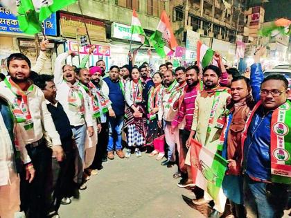 युवक काँग्रेसचे सचिव बंटी शेळके व शहराध्यक्ष तौसिफ खान यांच्या नेतृत्वात बाईक रॅली काढण्यात आली. यादरम्यान नागरिकांना मिठाई वाटण्यात आली. रॅलीत फजलूर रहमान कुरैशी, शहनवाज खान चिस्ती, अजहर शेख, नावेद शेख, स्वप्निल ढोके, बाबू खान, विजय मिश्रा, हेमंत कातुरे आदी उपस्थित होते.